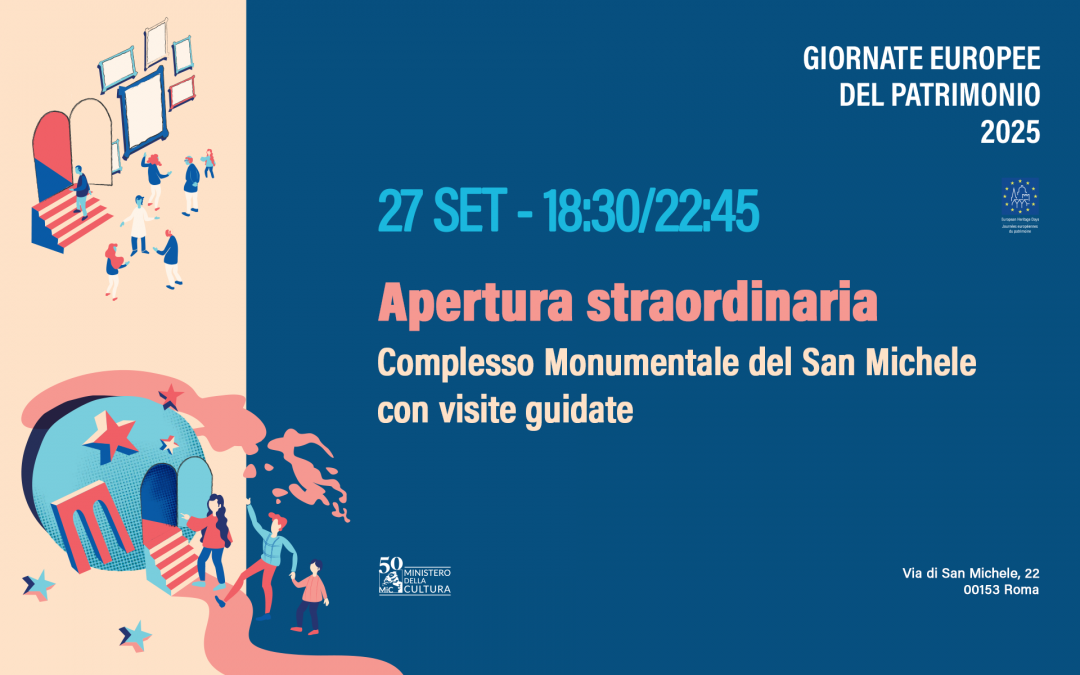 In occasione delle Giornate Europee del Patrimonio 2025, sabato 27 settembre il Complesso Monumentale del San Michele a Ripa Grande apre le sue porte, con visite guidate a cura del personale del Ministero della Cultura.