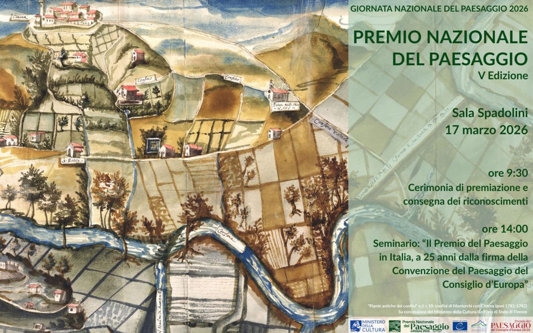 Il Ministero della Cultura comunica l’apertura delle selezioni per la partecipazione al Premio Nazionale del Paesaggio 2026, volto a valorizzare i progetti italiani più significativi nel campo della tutela, gestione, valorizzazione e rigenerazione del paesaggio.